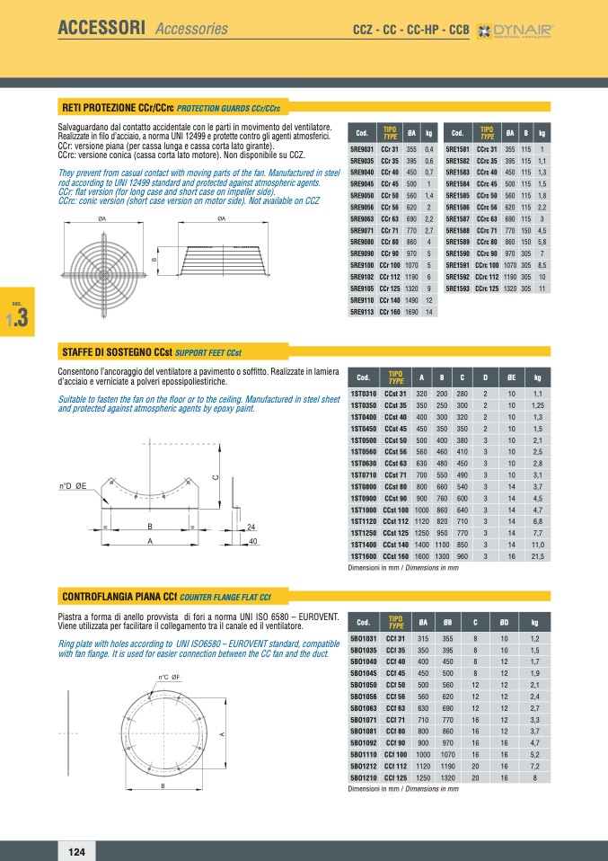 Consentono l’ancoraggio del ventilatore a pavimento o soffitto. Realizzate in lamiera