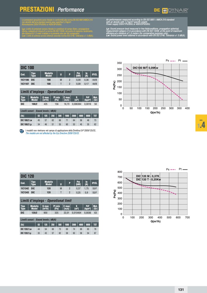 Le prestazioni aerauliche sono rilevate in conformità alla norma EN ISO 5801/AMCA 210