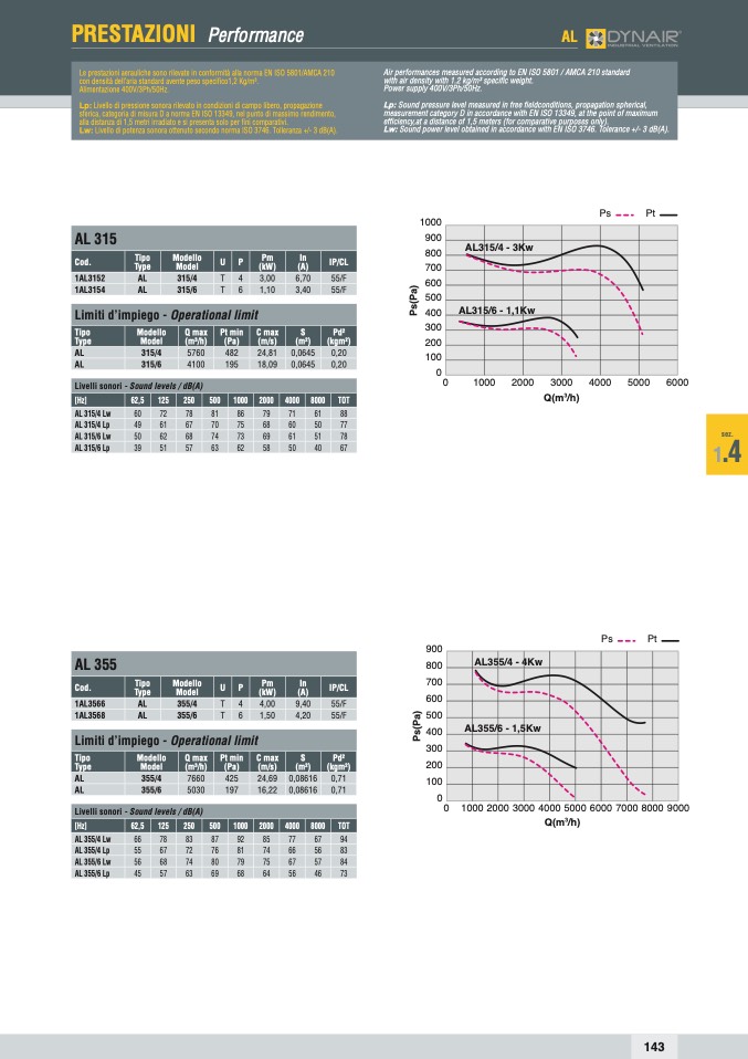 Le prestazioni aerauliche sono rilevate in conformità alla norma EN ISO 5801/AMCA 210