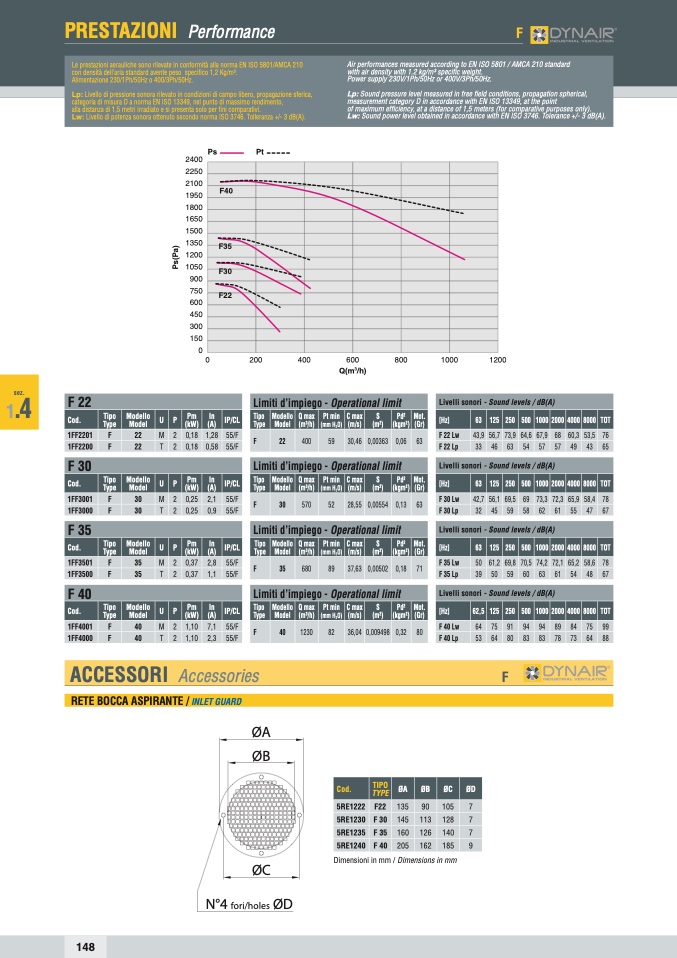 Le prestazioni aerauliche sono rilevate in conformità alla norma EN ISO 5801/AMCA 210