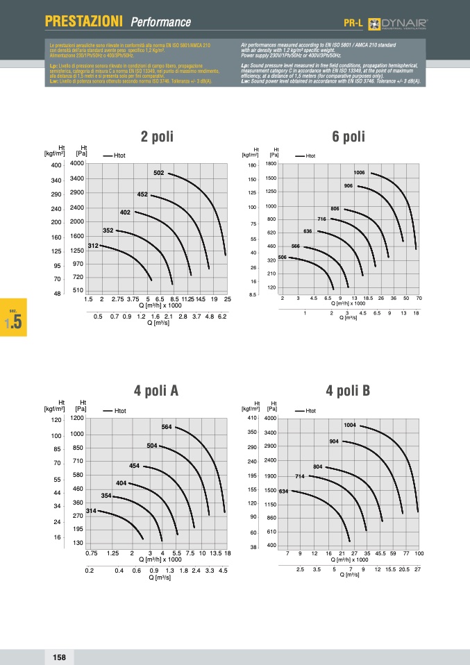 Le prestazioni aerauliche sono rilevate in conformità alla norma EN ISO 5801/AMCA 210