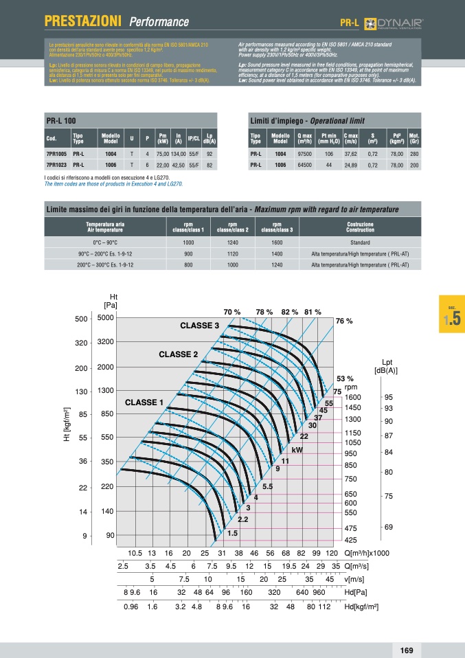 Le prestazioni aerauliche sono rilevate in conformità alla norma EN ISO 5801/AMCA 210
