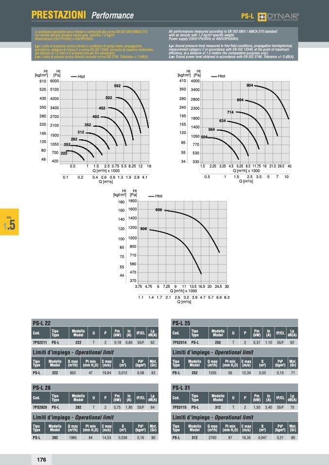 Le prestazioni aerauliche sono rilevate in conformità alla norma EN ISO 5801/AMCA 210