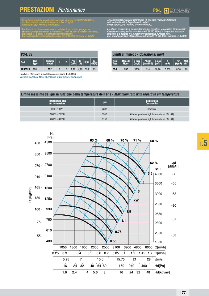 Le prestazioni aerauliche sono rilevate in conformità alla norma EN ISO 5801/AMCA 210