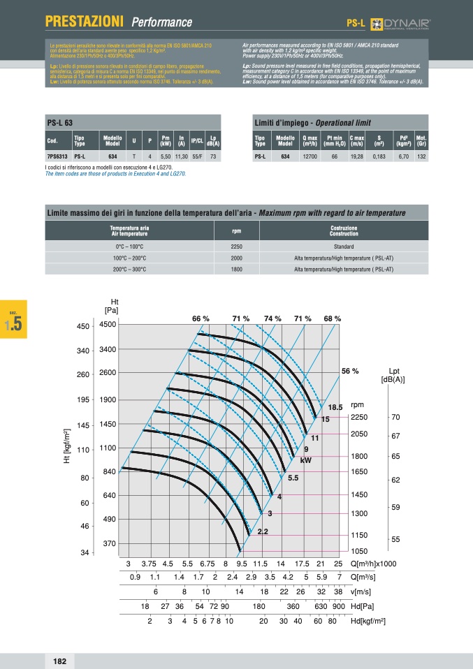 Le prestazioni aerauliche sono rilevate in conformità alla norma EN ISO 5801/AMCA 210