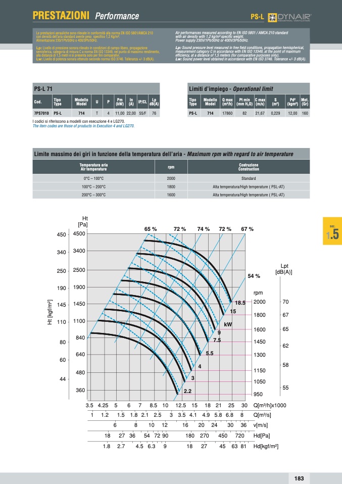 Lw: Livello di potenza sonora ottenuto secondo norma ISO 3746. Tolleranza +/- 3 dB(A).
