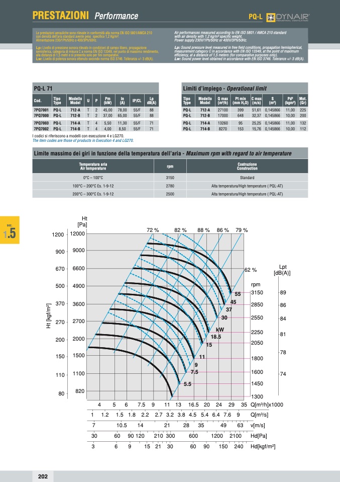 Lw: Livello di potenza sonora ottenuto secondo norma ISO 3746. Tolleranza +/- 3 dB(A).