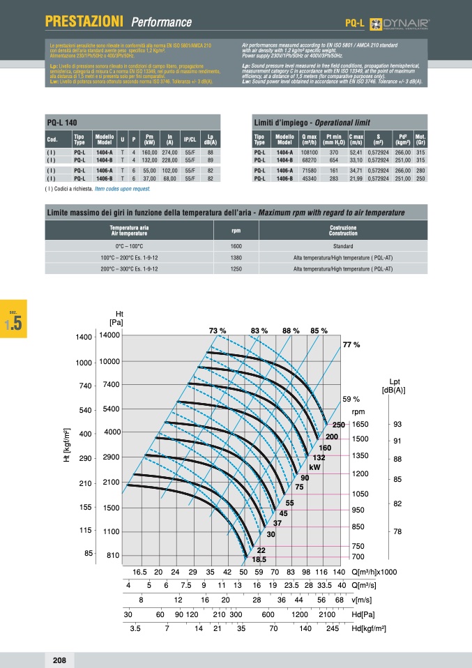Le prestazioni aerauliche sono rilevate in conformità alla norma EN ISO 5801/AMCA 210