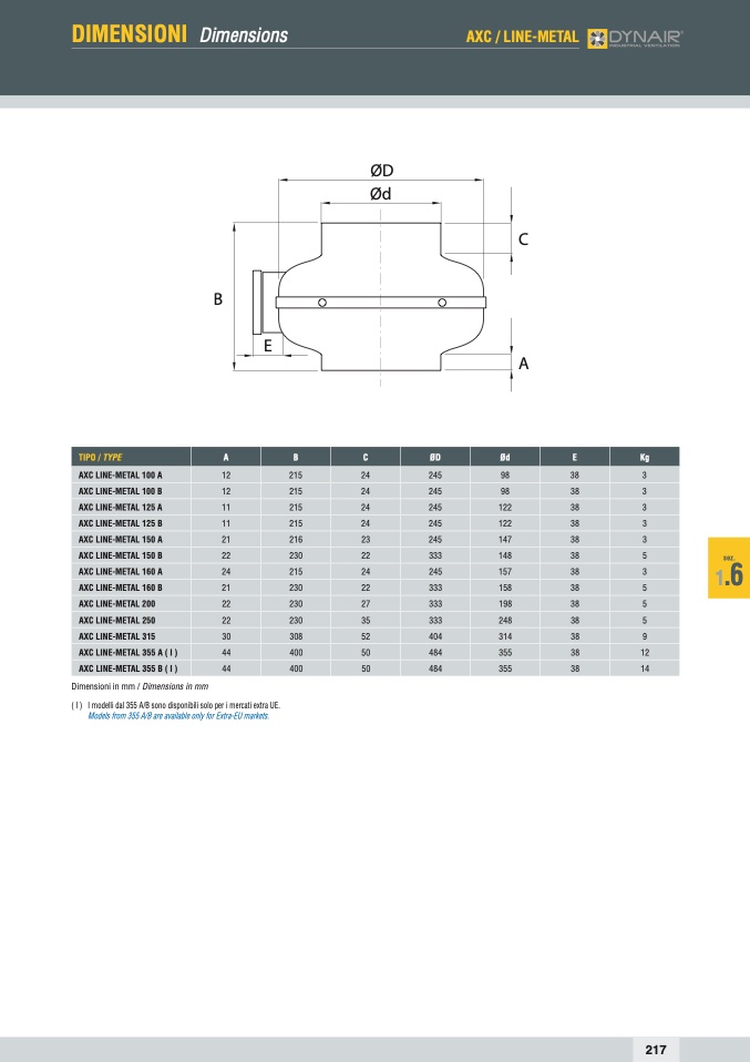 ( I ) I modelli dal 355 A/B sono disponibili solo per i mercati extra UE.