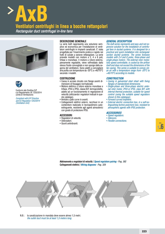 N.B.: la canalizzazione in mandata deve essere almeo 1,5 metri.