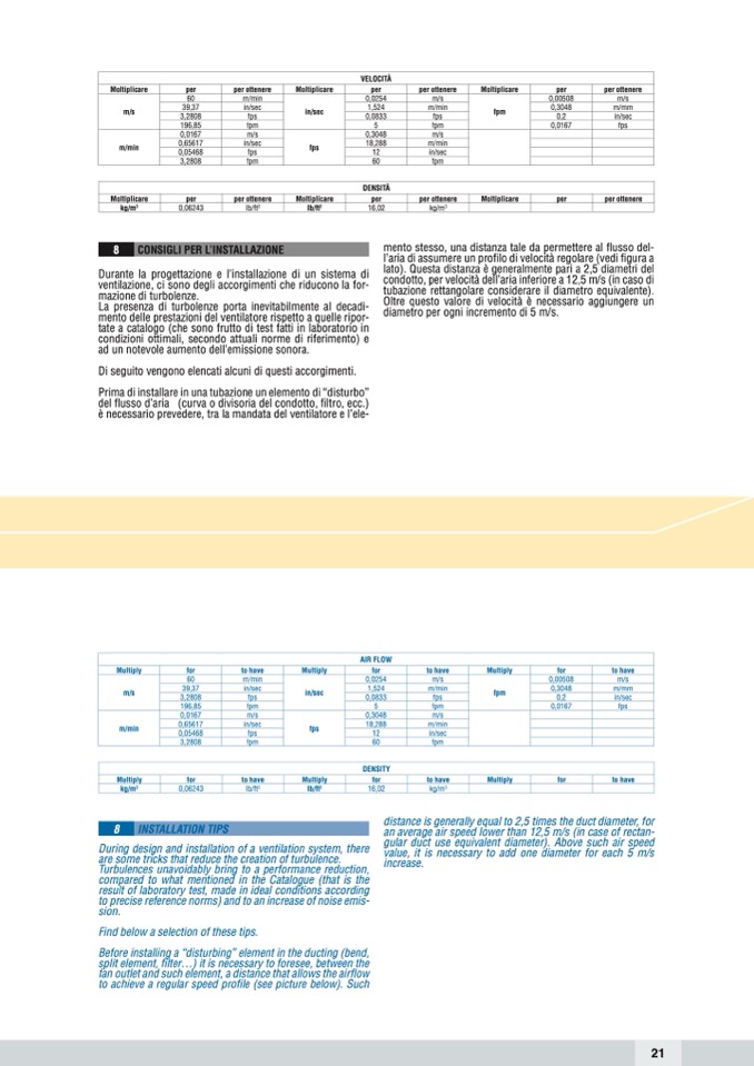 condotto, per velocità dell’aria inferiore a 12,5 m/s (in caso di
