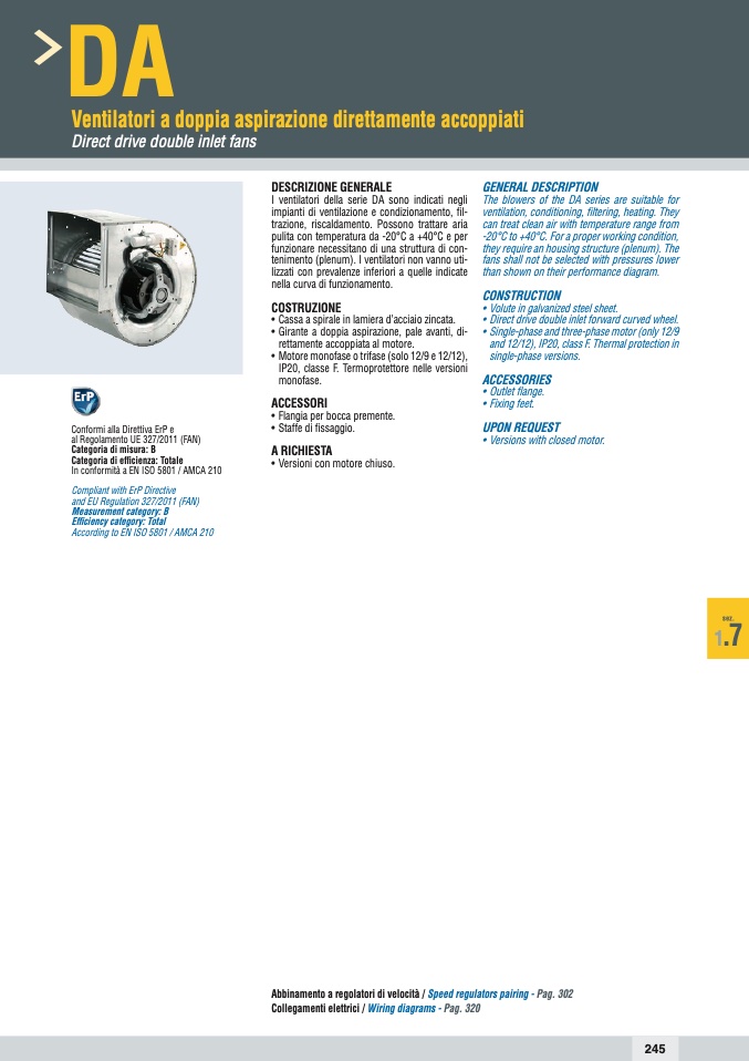 I ventilatori della serie DA sono indicati negli