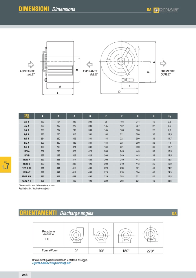 Pesi indicativi / Indicative weights