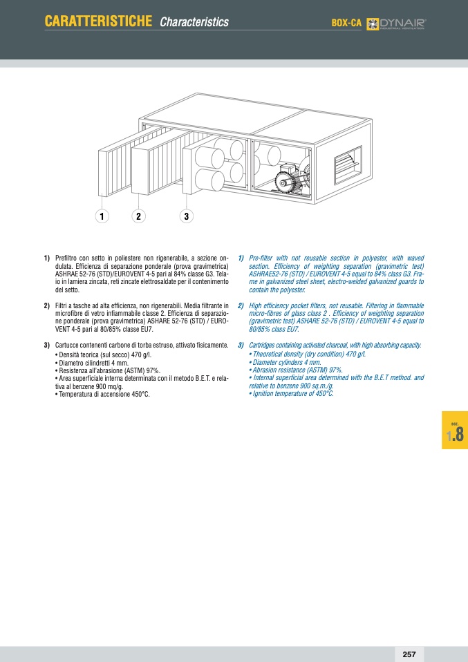 ASHRAE52-76 (STD) / EUROVENT 4-5 equal to 84% class G3. Fra-