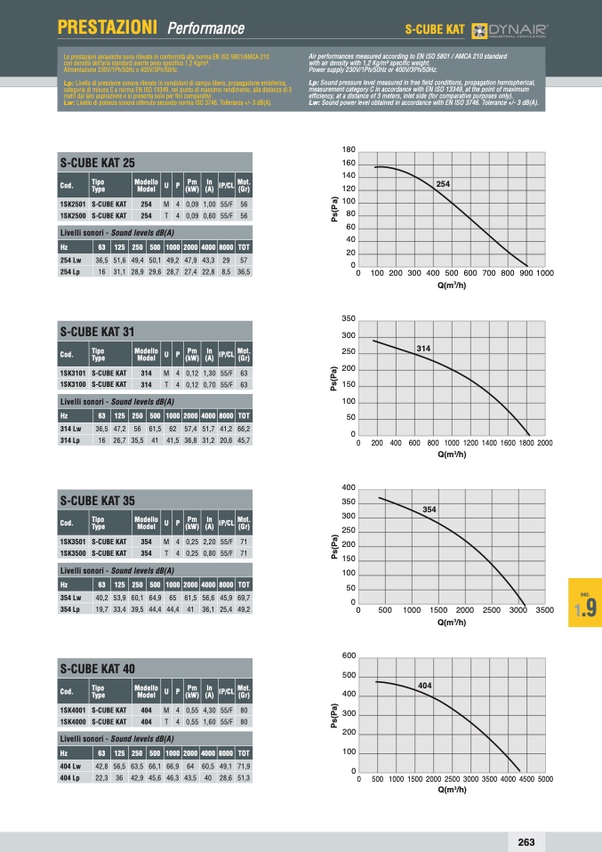 Le prestazioni aerauliche sono rilevate in conformità alla norma EN ISO 5801/AMCA 210