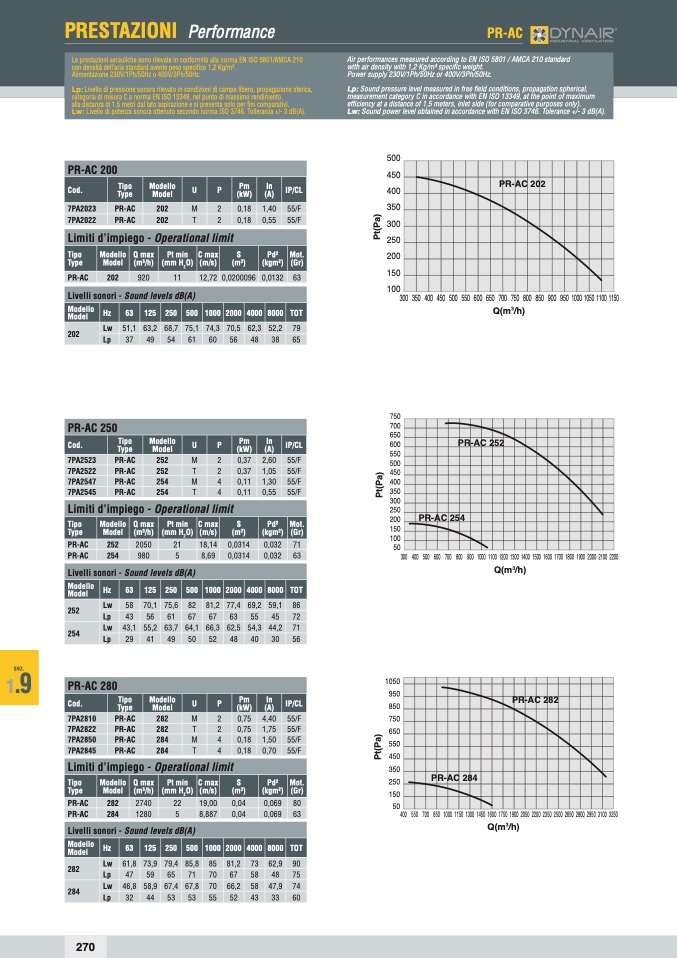 Le prestazioni aerauliche sono rilevate in conformità alla norma EN ISO 5801/AMCA 210