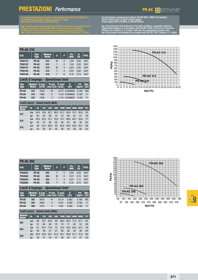Le prestazioni aerauliche sono rilevate in conformità alla norma EN ISO 5801/AMCA 210