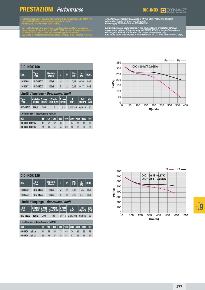 Le prestazioni aerauliche sono rilevate in conformità alla norma EN ISO 5801/AMCA 210