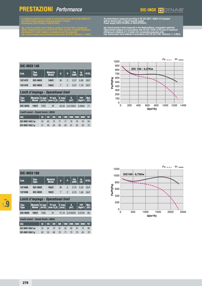 Le prestazioni aerauliche sono rilevate in conformità alla norma EN ISO 5801/AMCA 210