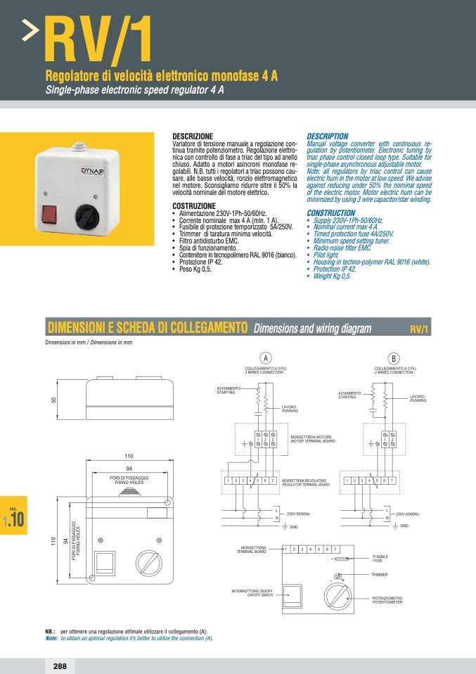 NB.: per ottenere una regolazione ottimale utilizzare il collegamento (A).