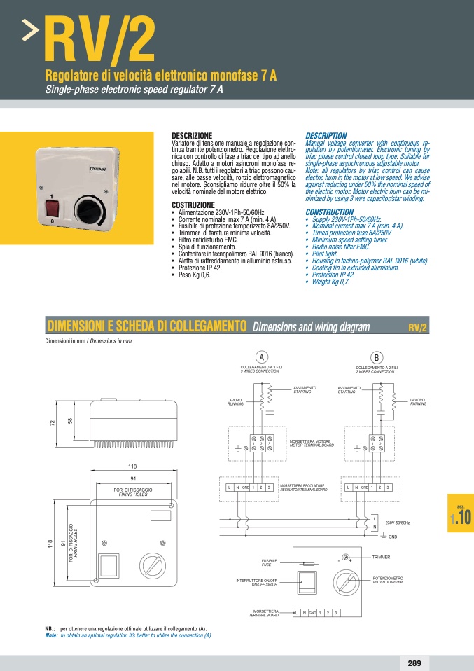 NB.: per ottenere una regolazione ottimale utilizzare il collegamento (A).