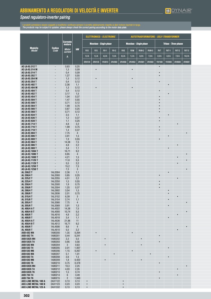 The products may be subject to updates: please always check the correct pairing according to the motor data plate.