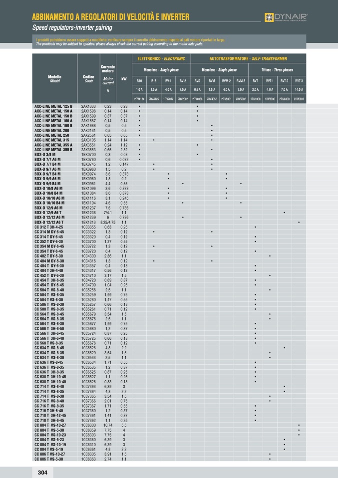 The products may be subject to updates: please always check the correct pairing according to the motor data plate.