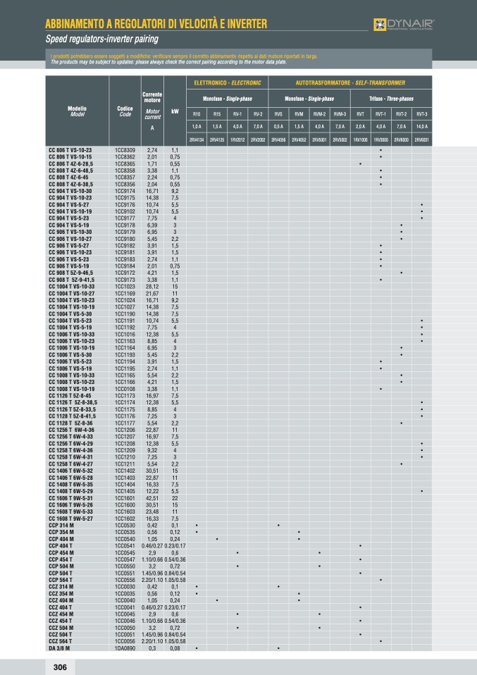 The products may be subject to updates: please always check the correct pairing according to the motor data plate.