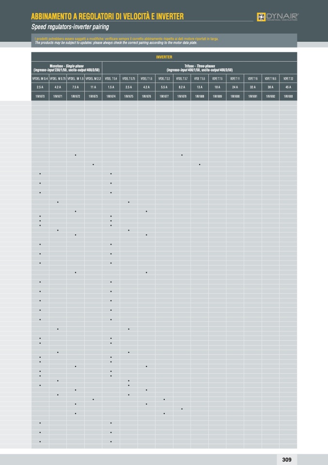 The products may be subject to updates: please always check the correct pairing according to the motor data plate.