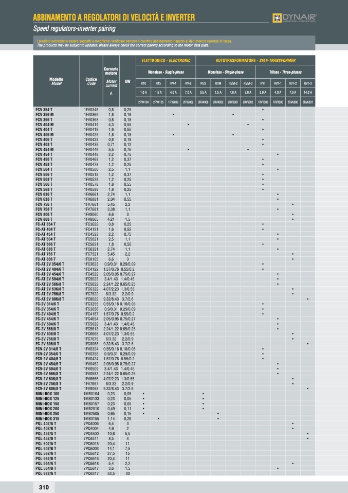 The products may be subject to updates: please always check the correct pairing according to the motor data plate.