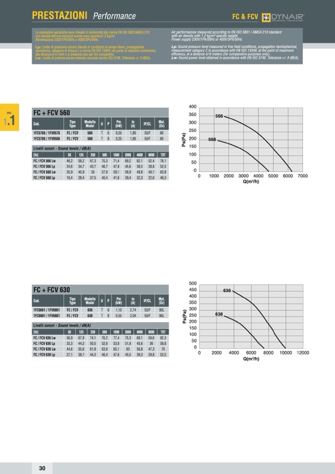 Le prestazioni aerauliche sono rilevate in conformità alla norma EN ISO 5801/AMCA 210