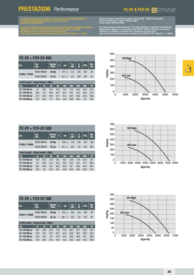Le prestazioni aerauliche sono rilevate in conformità alla norma EN ISO 5801/AMCA 210