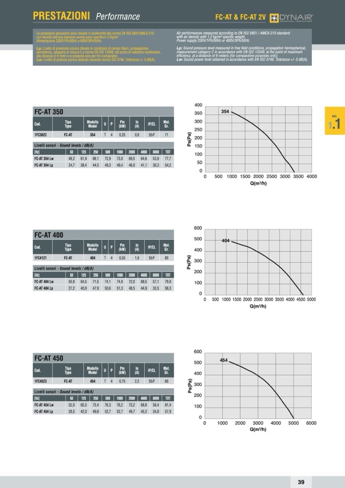 Le prestazioni aerauliche sono rilevate in conformità alla norma EN ISO 5801/AMCA 210