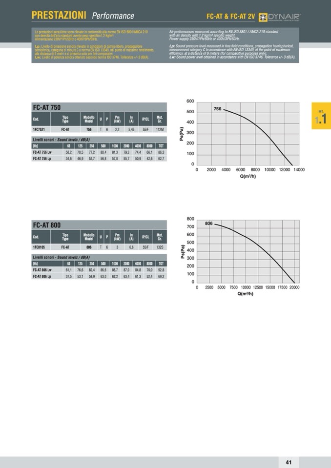 Le prestazioni aerauliche sono rilevate in conformità alla norma EN ISO 5801/AMCA 210