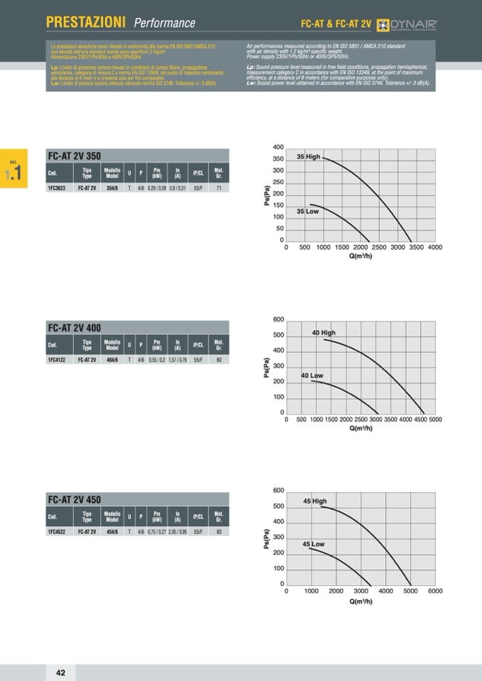 Le prestazioni aerauliche sono rilevate in conformità alla norma EN ISO 5801/AMCA 210