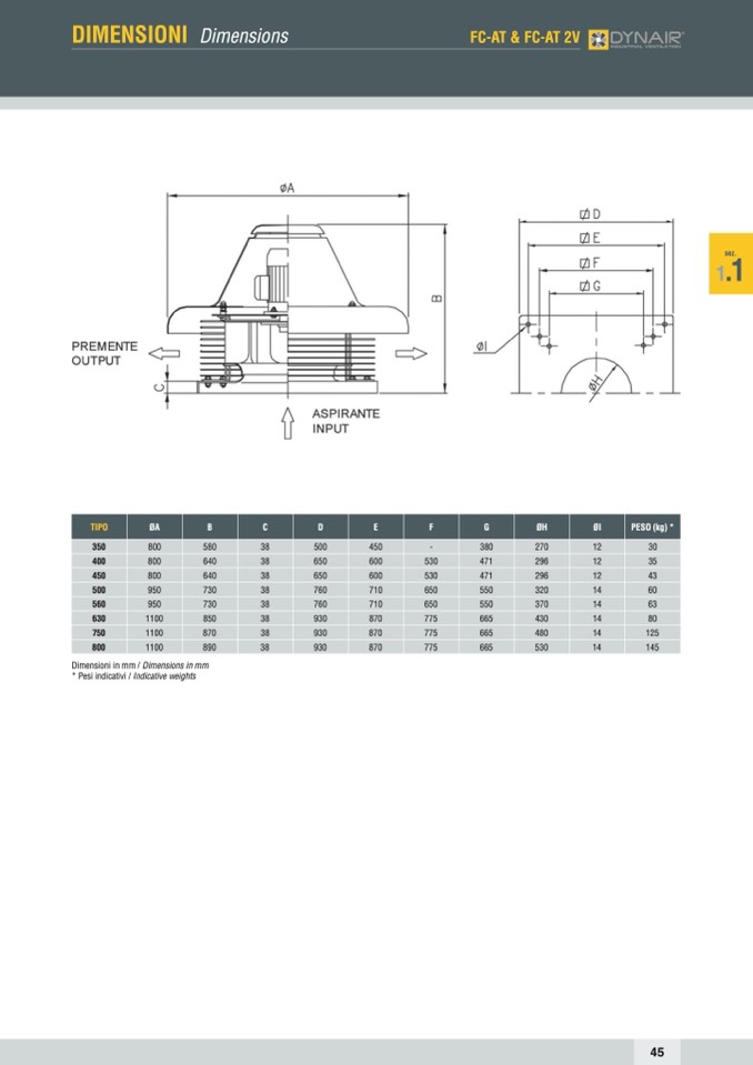 * Pesi indicativi / Indicative weights