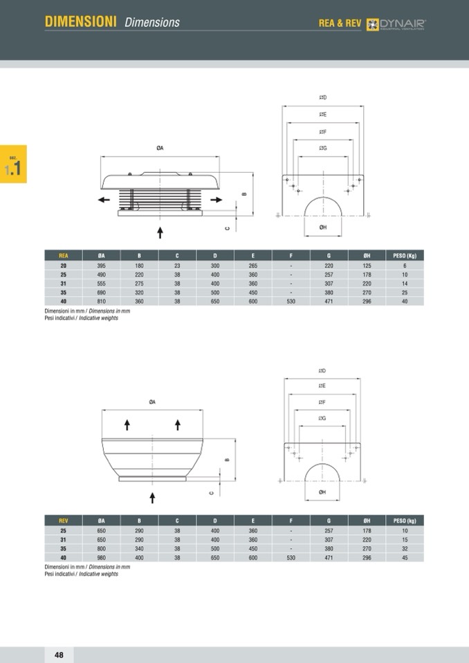 Pesi indicativi / Indicative weights