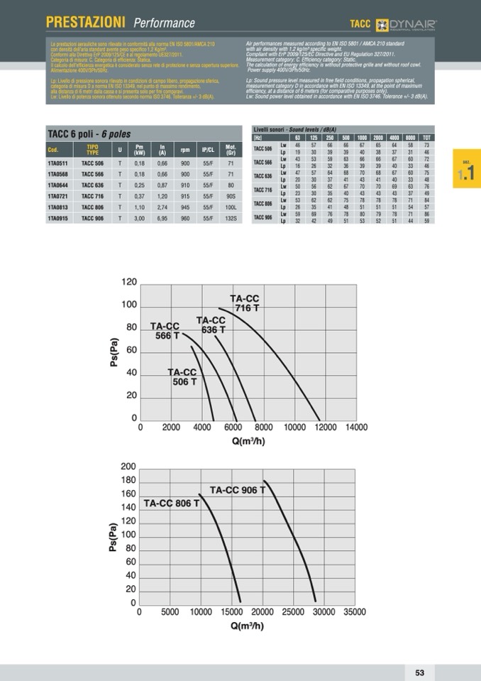Le prestazioni aerauliche sono rilevate in conformità alla norma EN ISO 5801/AMCA 210