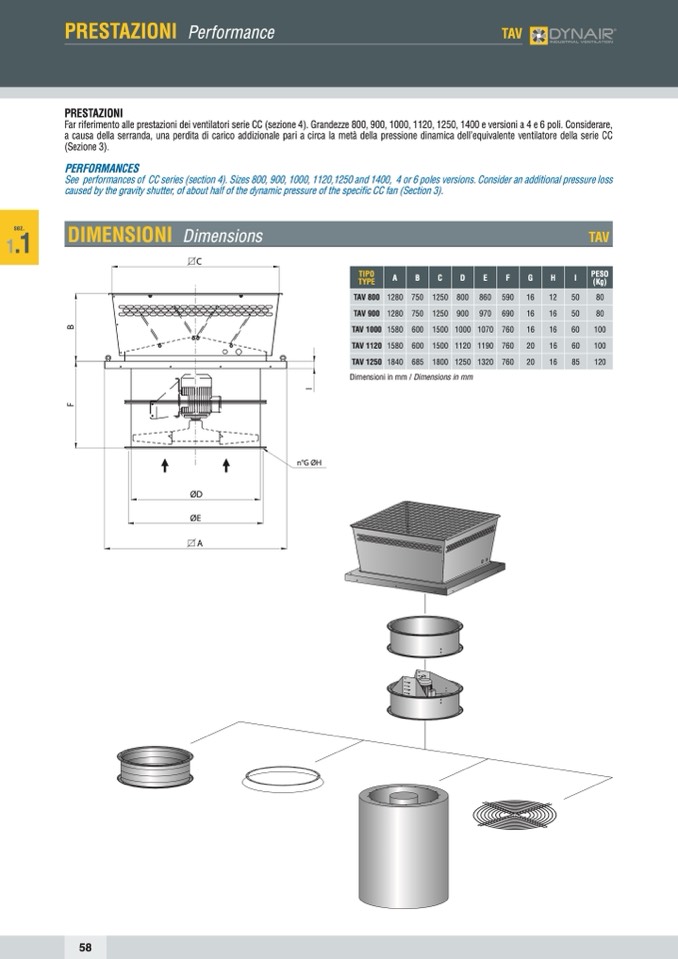 Far riferimento alle prestazioni dei ventilatori serie CC (sezione 4). Grandezze 800, 900, 1000, 1120, 1250, 1400 e versioni a 4 e 6 poli. Considerare,