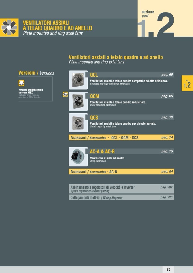 Ventilatori assiali a telaio quadro compatti e ad alta efficienza.