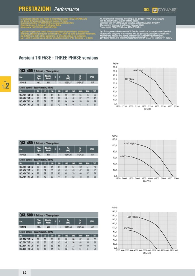 Le prestazioni aerauliche sono rilevate in conformità alla norma EN ISO 5801/AMCA 210