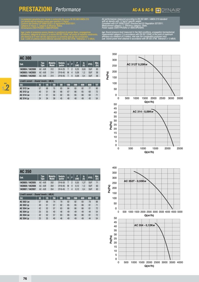 Le prestazioni aerauliche sono rilevate in conformità alla norma EN ISO 5801/AMCA 210