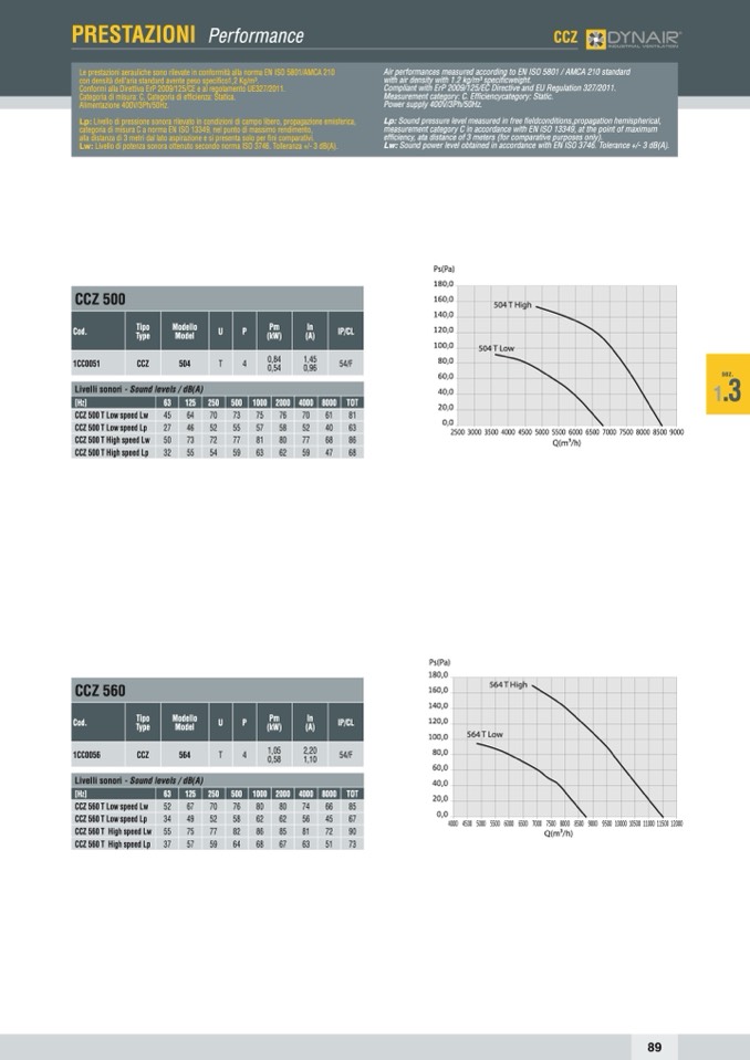 Le prestazioni aerauliche sono rilevate in conformità alla norma EN ISO 5801/AMCA 210