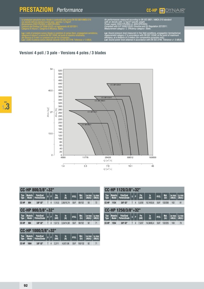 Le prestazioni aerauliche sono rilevate in conformità alla norma EN ISO 5801/AMCA 210