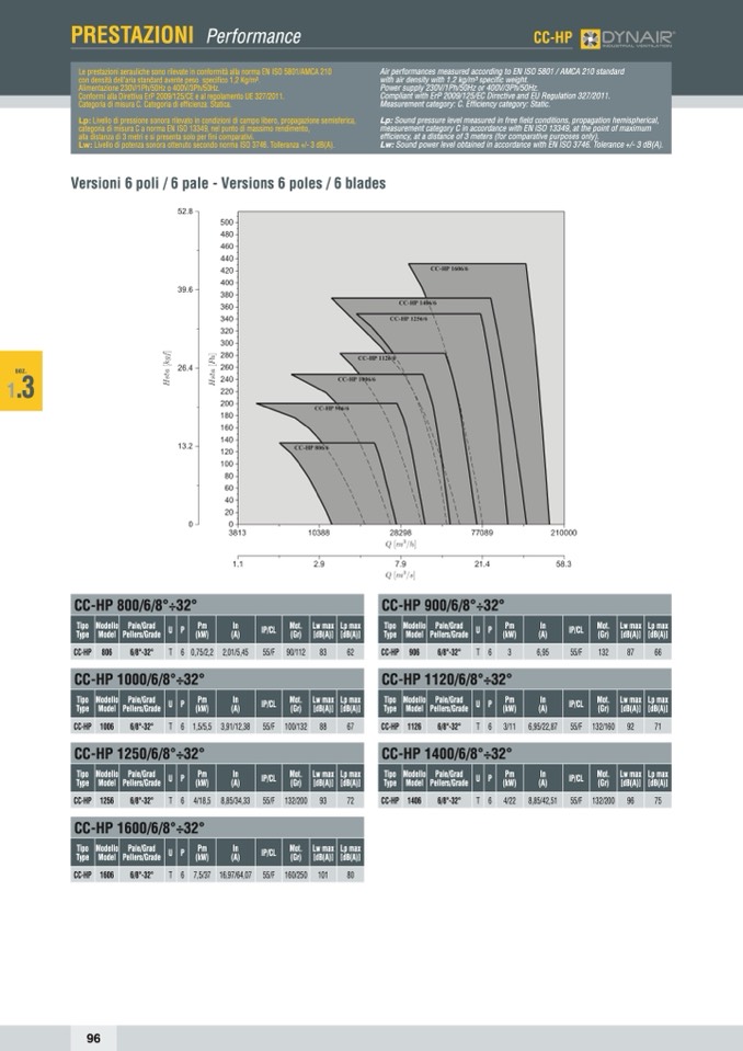 Le prestazioni aerauliche sono rilevate in conformità alla norma EN ISO 5801/AMCA 210