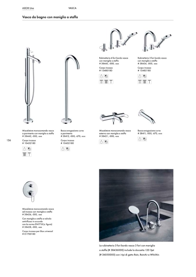 (# 26050000) con i tipi di getto Rain, RainAir e WhirlAir.
