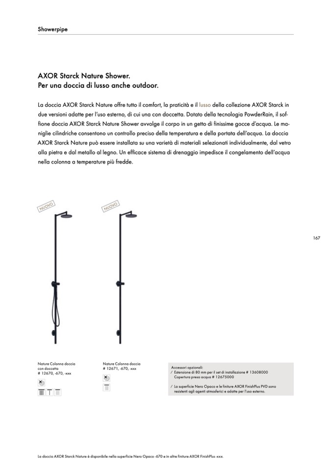 due versioni adatte per l’uso esterno, di cui una con doccetta. Dotato della tecnologia PowderRain, il sof-