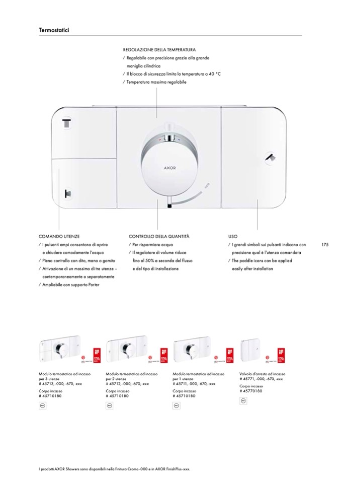 I prodotti AXOR Showers sono disponibili nella finitura Cromo -000 e in AXOR FinishPlus -xxx.