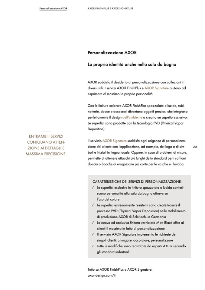 diversi stili. I servizi AXOR FinishPlus e AXOR Signature aiutano ad