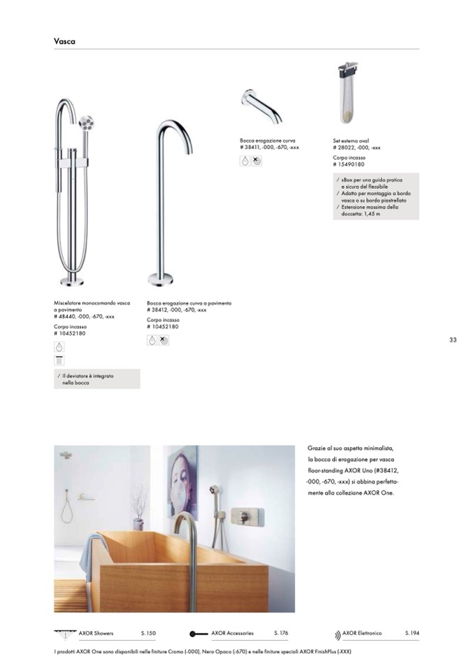 I prodotti AXOR One sono disponibili nelle finiture Cromo (-000), Nero Opaco (-670) e nelle finiture speciali AXOR FinishPlus (-XXX)